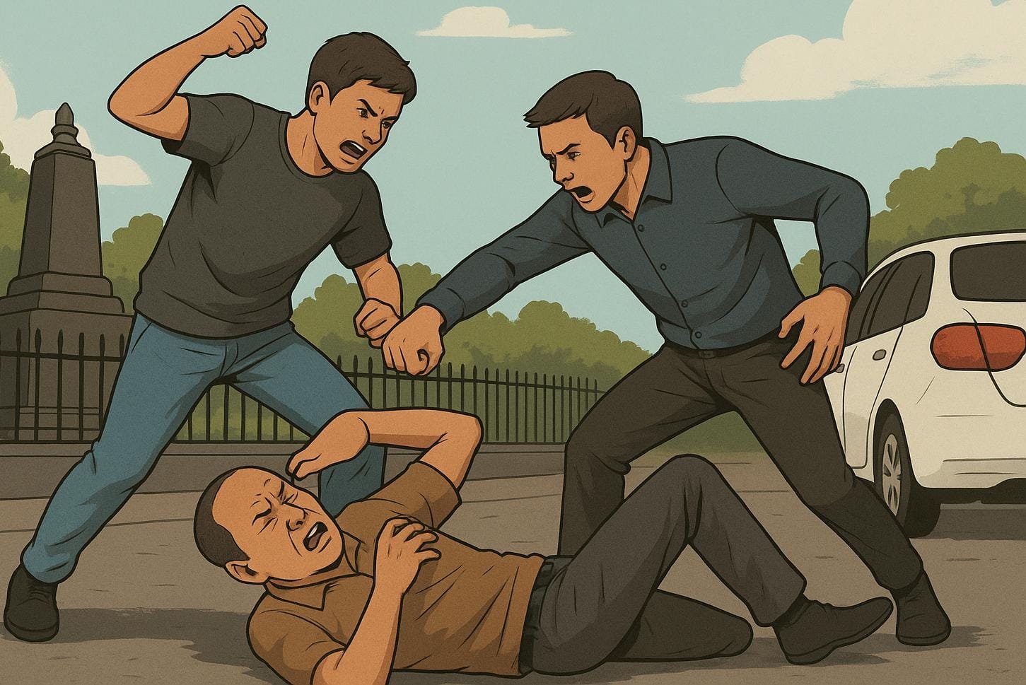 Tak lama setelah itu, sejumlah orang keluar dari sebuah mobil yang berada di belakang pengendara motor tersebut dan langsung mengeroyok kedua matel tersebut. “Setelah distop, menurut saksi, tiba-tiba datang mobil. Pengendara mobil turun dan memukuli matel itu,” ujar Kapolsek Pancoran Kompol Mansur.
